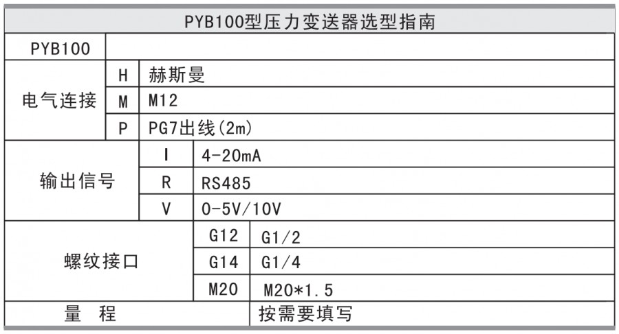 The PYB100 pressure transmitter uses a diffused Silicon pressure core as a sensitive element, and a full-digital circuit is selected. The overall performance is stable and reliable, and long-distance signal transmission can be carried out. All stainless steel structure, easy to install. Has extremely high anti-interference and impact resistance. Widely used in pneumatic, hydraulic, water supply, fire protection, environmental protection, medical and other industries.