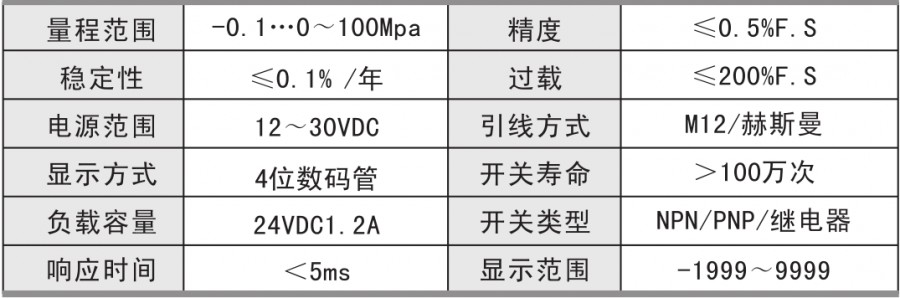 4位LED顯示當前壓力值,無顯示值誤差